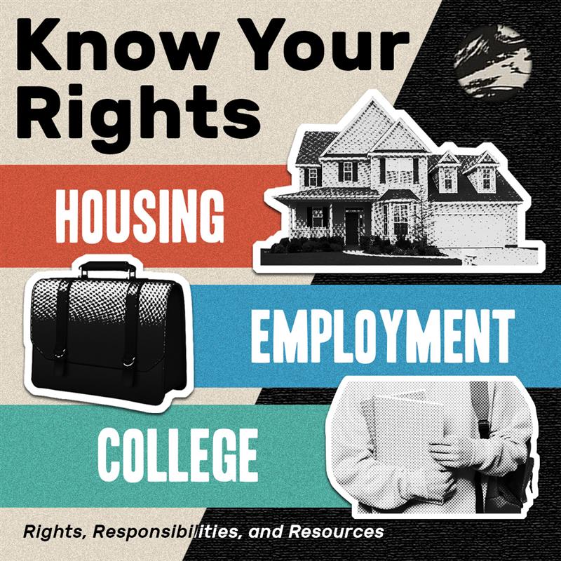 Click the buttons below to learn your rights and responsibilities when it comes to housing, employment, and the college, plus the available resources to support you along the way.